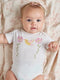 Cómodo body estampado con detalles bordados. Cuenta con hombro adelantado y broches en la entrepierna para mayor facilidad a la hora de vestir a tu bebé. Tela fresca, cómoda y suave perfecta para el día a día.
