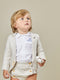 Blazer elaborado en lino de alta calidad que combina elegancia y comodidad para cualquier ocasión especial. Su tono café claro versátil se adapta fácilmente a diferentes estilos y prendas, permitiéndote crear outfits más elegantes sin esfuerzo. El lino natural proporciona transpirabilidad ideal para climas cálidos, manteniendo a tu bebé fresco durante el día. Con un corte clásico y detalles cuidadosamente diseñados, este blazer es la pieza perfecta para elevar el closet de tu bebé.