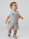 Overall con bolsillos elaborado en 100% algodón gris claro. Elegante y cómodo, perfecto para las ocasiones especiales de tu bebé. Combínalo con nuestras camisas niño en color azul o blanco.